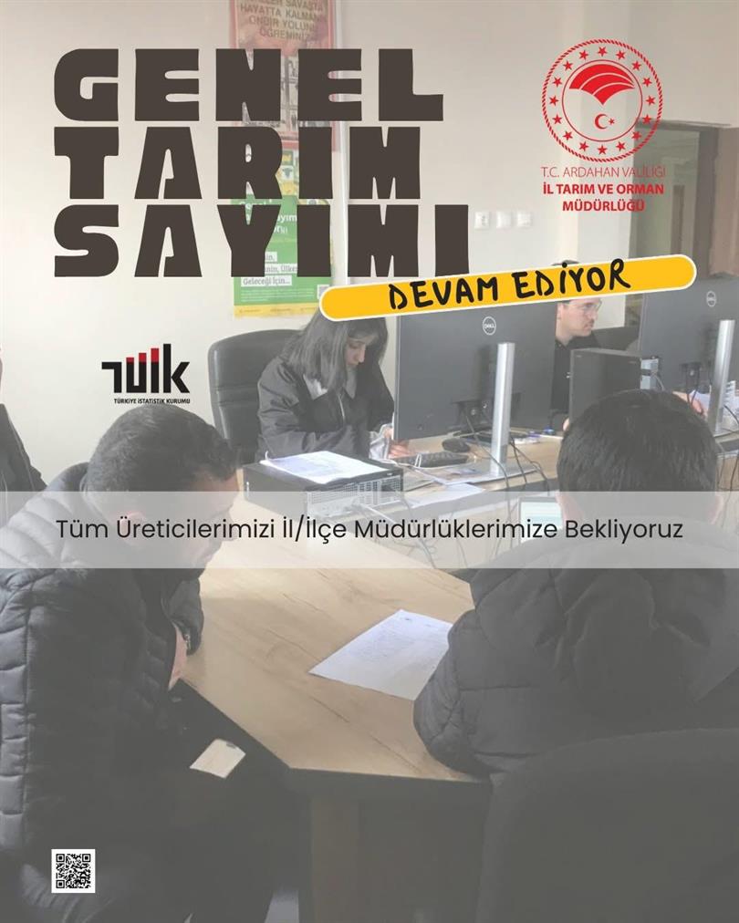 İlimizde TÜİK ile birlikte yürütülen Genel Tarım Sayımı çalışmalarımız devam etmektedir.