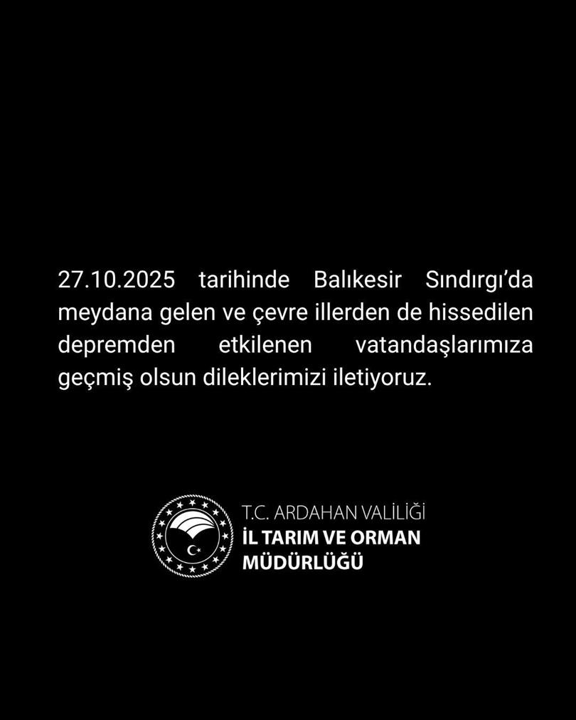 27.10.2025 tarihinde Balıkesir Sındırgı’da meydana gelen ve çevre illerden de hissedilen depremden etkilenen vatandaşlarımıza geçmiş olsun dileklerimizi iletiyoruz