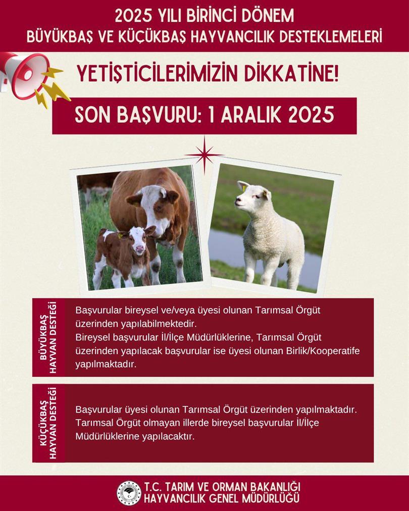 🗓️ Son başvuru 01 Aralık 2025 🐑 🐮