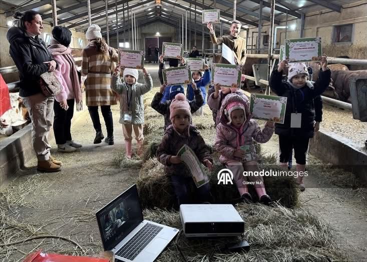 Üretimin kalbinde gerçekleşen saha eğitimlerinde minikler; hayvan bakımı, beslenme ve tarımsal üretim süreçlerini uygulamalı olarak tanıdı. Yeni doğmuş buzağılarla tanışan, tarım aletlerini yakından inceleyen çocuklarımızın merakı ve mutluluğu görülmeye değerdi.