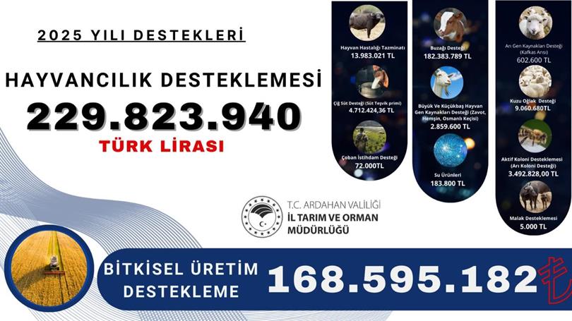 2025 Yılı İçerisinde; HAYVANCILIK DESTEKLEMESİ 229.823.940 TL BİTKİSEL ÜRETİM DESTEKLEMESİ 168.595.182 TL Üreticilerimize Hayırlı ve Bereketli Olsun 🧿