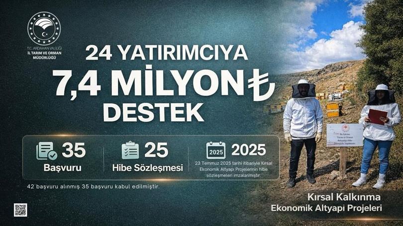 42 Başvurudan 35 adet başvuru kabul edilmiş olup 25 hibe sözleşmesi yapılmıştır.23 Temmuz 2025 tarihi itibariyle Kırsal Ekonomik Altyapı Projelerinin hibe sözleşmesi alınmıştır.