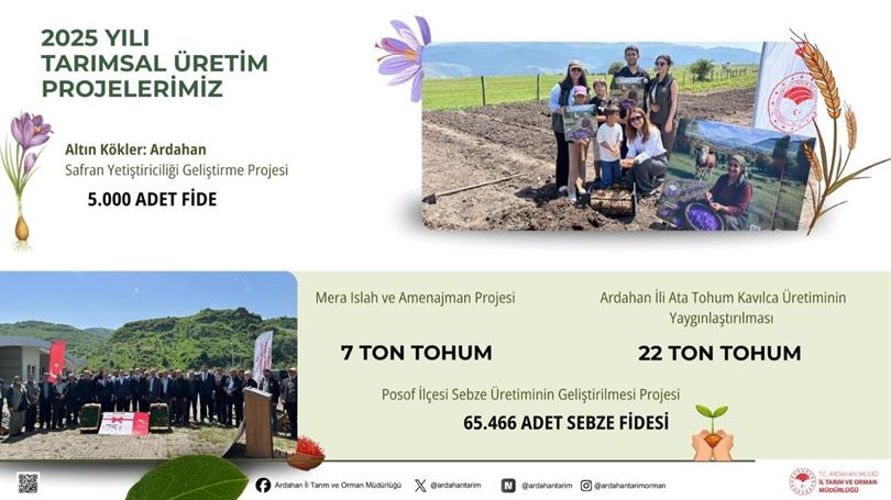 İlimizin tarımsal potansiyelini artırmak, yerel üretimi güçlendirmek ve sürdürülebilir tarım uygulamalarını yaygınlaştırmak amacıyla yürüttüğümüz projeler kapsamında; ata tohumlarının korunması ve yaygınlaştırılması, mera ıslahı, sebze ve tıbbi aromatik bitki üretiminin geliştirilmesi gibi birçok alanda somut adımlar atıyoruz.