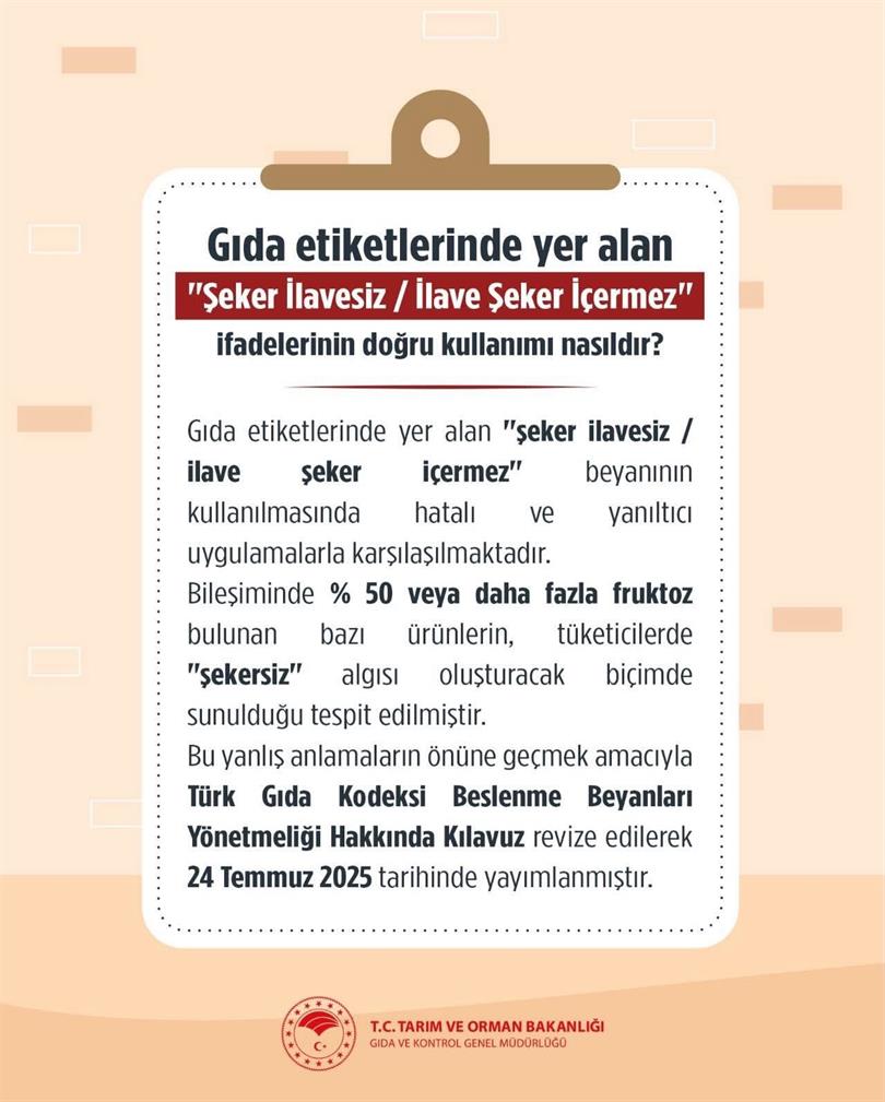 Gıda etiketlerinde yer alan “şeker ilavesiz/ilave şeker içermez” ifadelerinin doğru kullanımı nasıldır?
